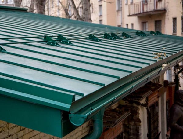 Фальцевая кровля делается из больших, прочных и гибких листов металла, благодаря этому может выдержать аномально высокие и аномально низкие температурные условия, а также все виды ураганов и осадков.