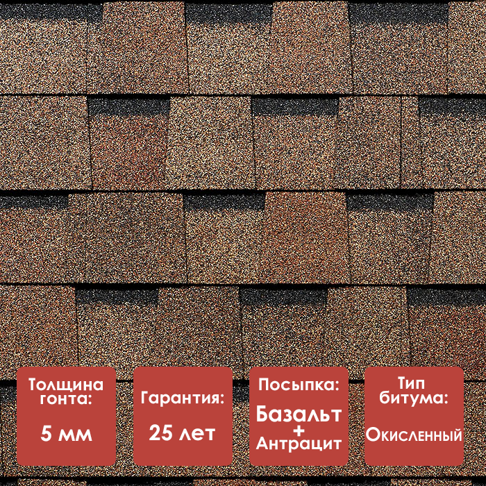 - Толщина гонта: 2,5 мм ±0,2 мм