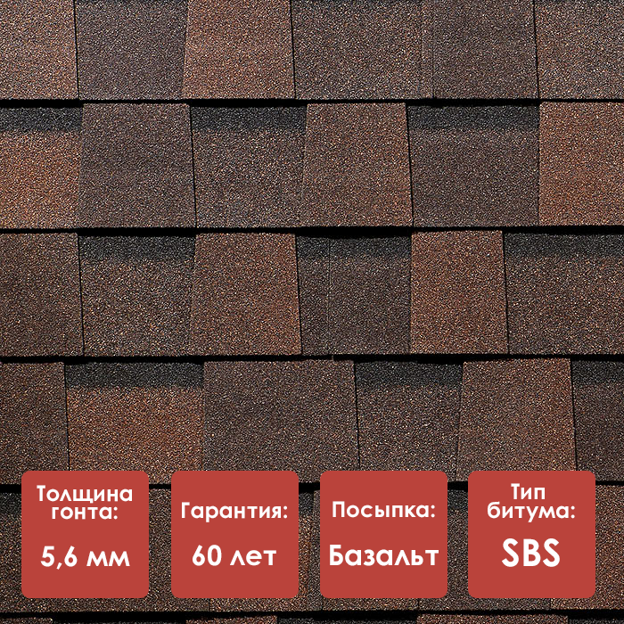 Использование SBS-модифицированного битума и базальтовой посыпки значительно увеличивает срок службы кровельного покрытия без потери эксплуатационных характеристик. - Эффектный внешний вид