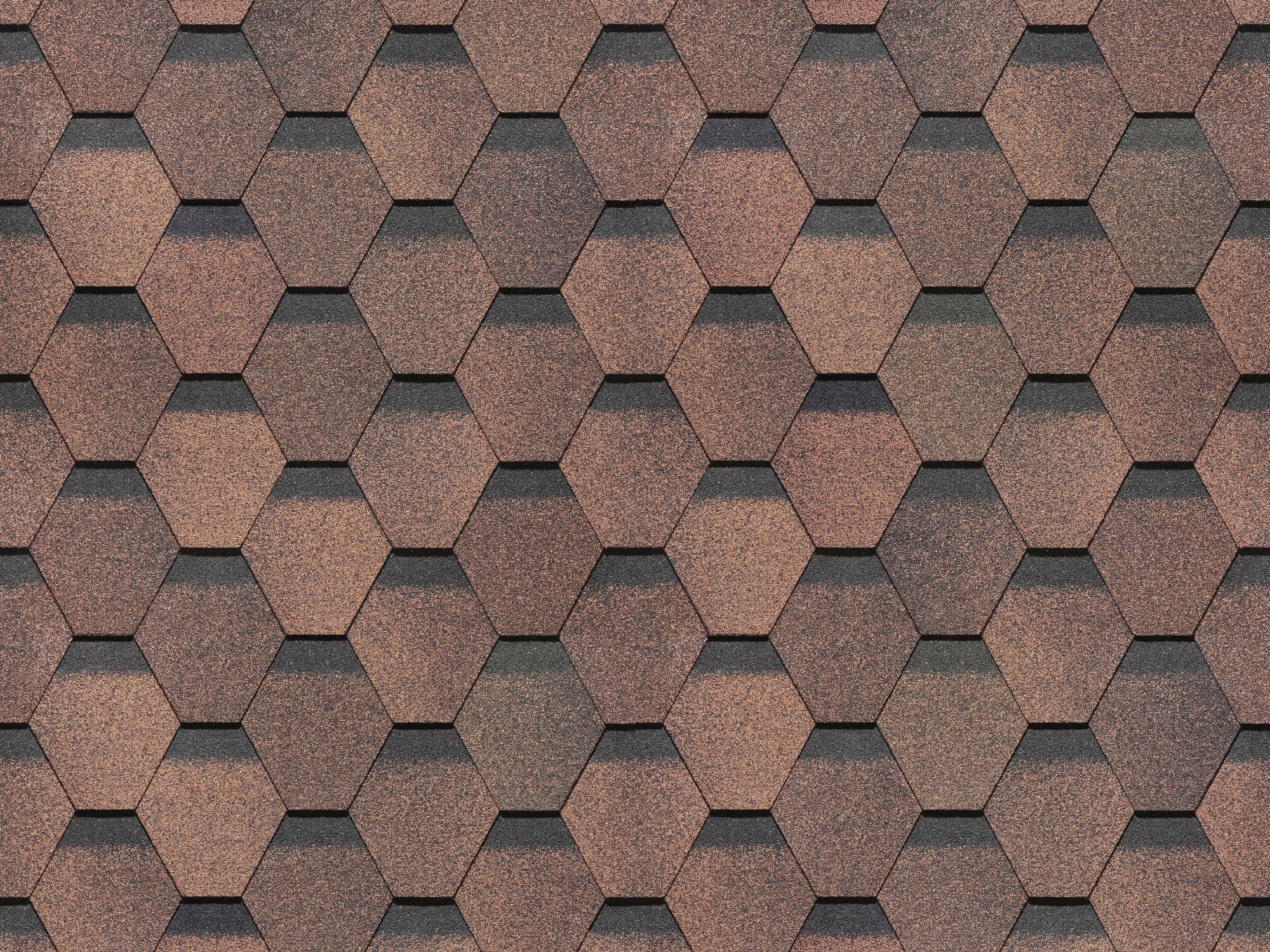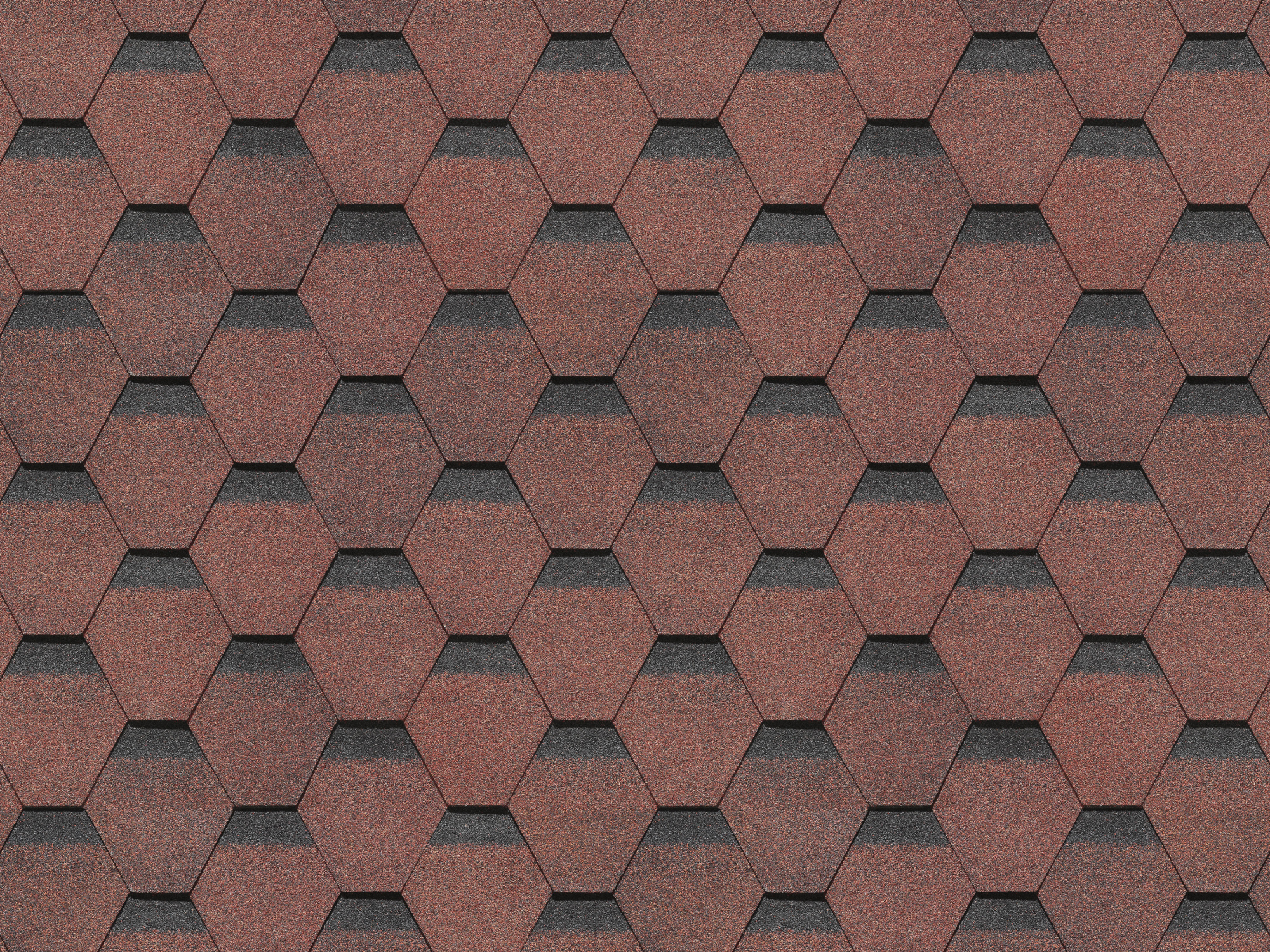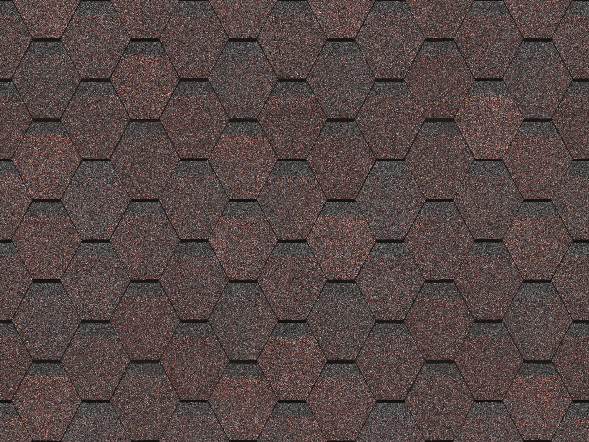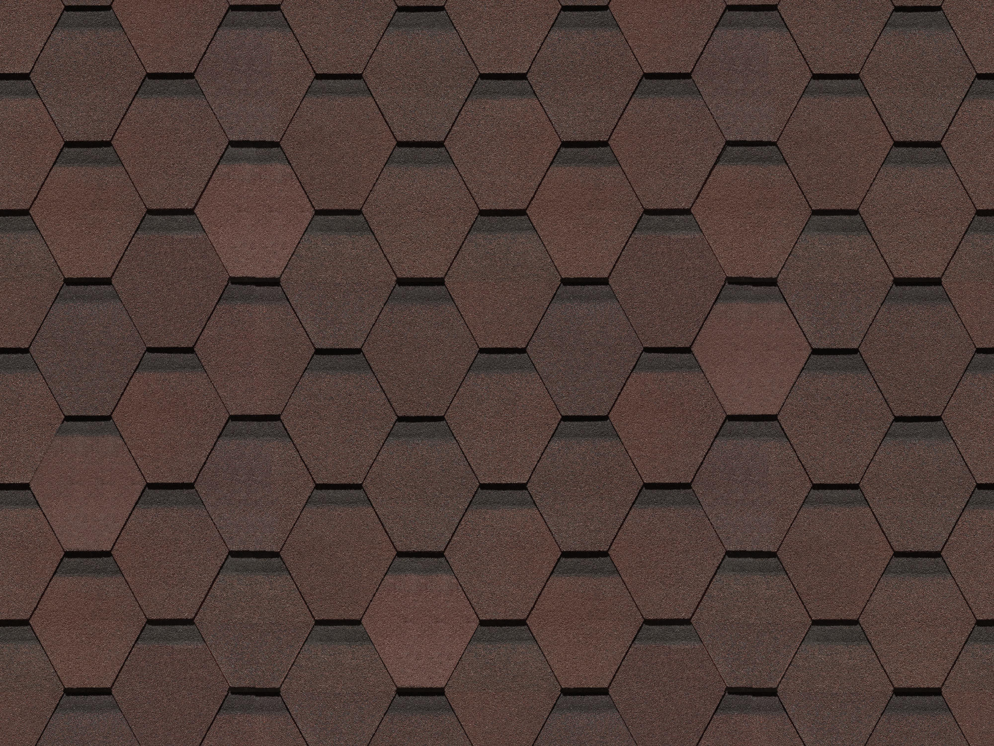 Поверхность кровли имеет выраженный рельеф: шестигранные ячейки сформированы из скруглённых ромбов с эффектом тени в верхней части каждого элемента. Строгая геометрия, аккуратная фактура и глубокие оттенки придают крыше солидный и узнаваемый внешний вид.
