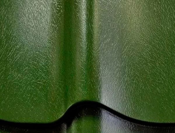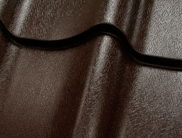 Визуально покрытие напоминает текстуру кожи или мелкий рельеф, который эффектно отражает свет и придаёт кровле выразительный внешний вид.