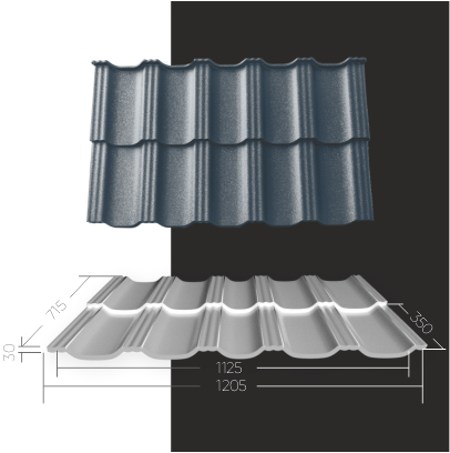 Рельефная волна и тройное тиснение создают объёмную кровлю с премиальным дизайном. Предусмотрена коллекция благородных оттенков.