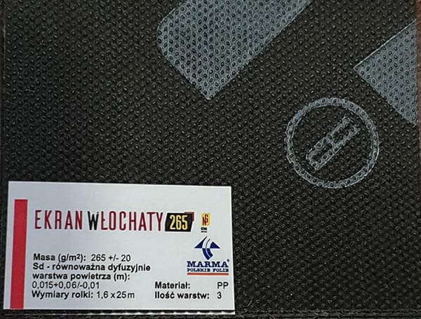 Технические характеристики кровельного экрана EKRAN DACHOWY WLOCHATY 265 NG