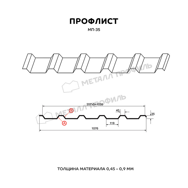 Технические характеристики профнастила МП-35