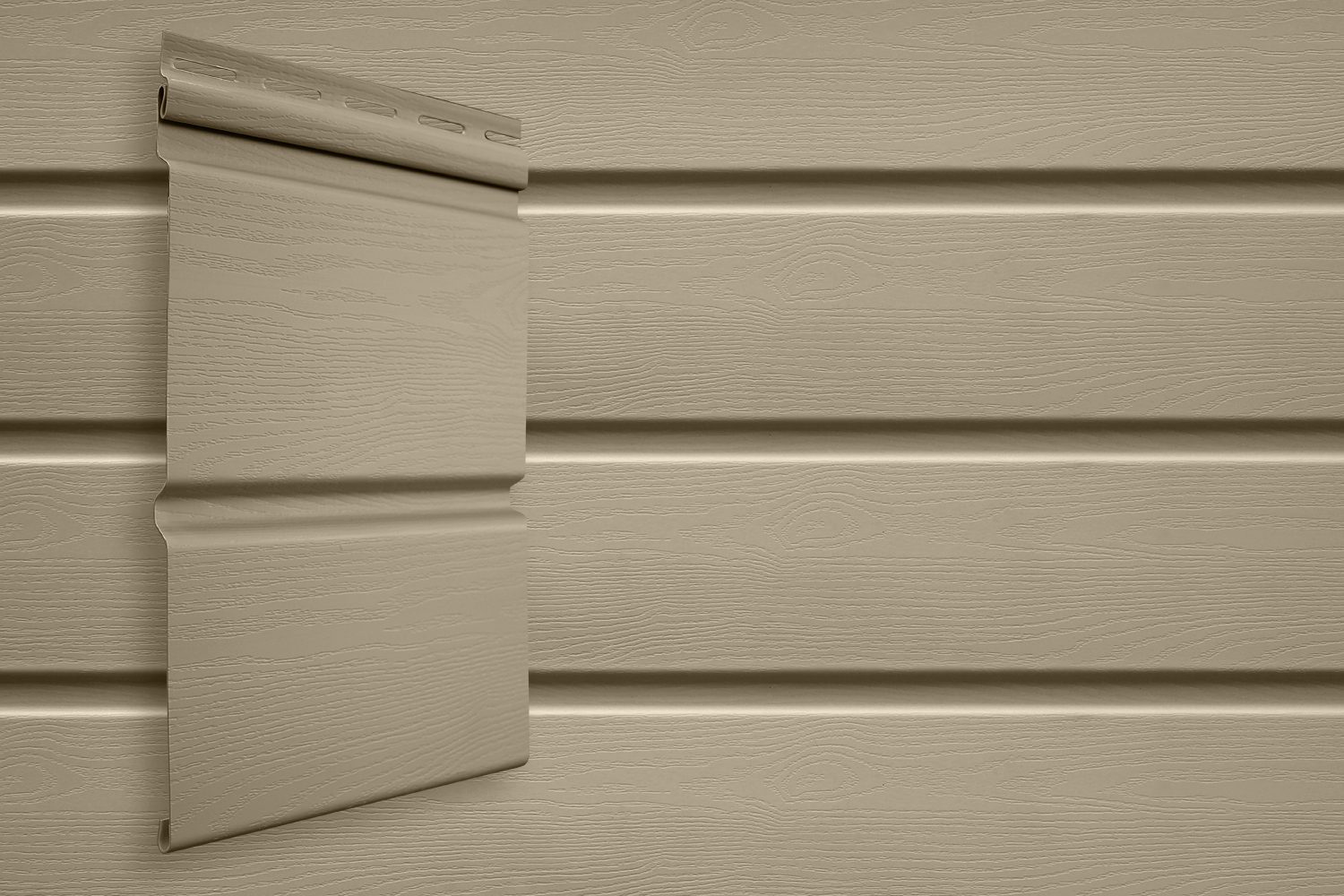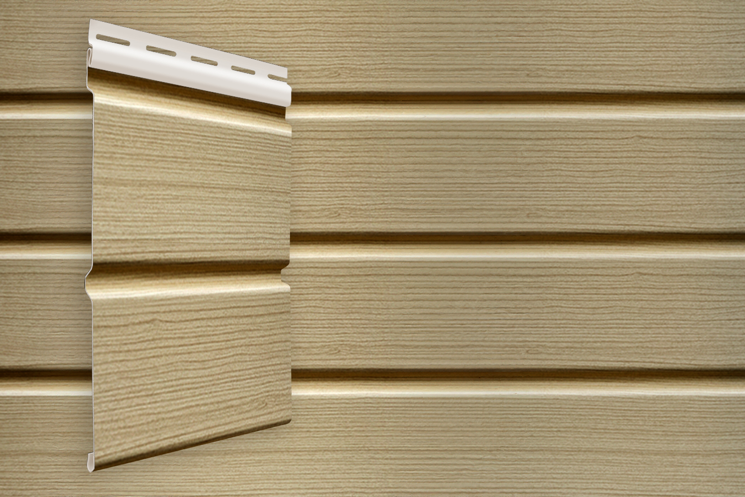 Сайдинг Double-брус — это фасадный материал с усиленным рельефом, который визуально повторяет кладку из массивного деревянного бруса. За счёт двойного профиля фасад выглядит более объёмным, «глубоким» и солидным, чем при использовании классического сайдинга.