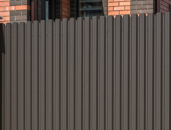 Штакетник представляет собой отдельные металлические планки, которые монтируются на горизонтальные направляющие с заданным шагом или без зазоров. П-образный фигурный штакетник Grand Line изготавливается из оцинкованной стали толщиной до 0,5 мм и дополнительно защищается полимерным покрытием. Такое сочетание материалов обеспечивает устойчивость к внешним воздействиям и позволяет сохранить аккуратный внешний вид ограждения на протяжении длительного времени.