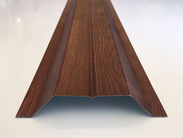 Полимерное покрытие защищает металл от влаги, ультрафиолетового излучения и перепадов температуры. В ассортименте представлены различные цветовые решения и декоративные покрытия, включая текстуры с имитацией древесины.